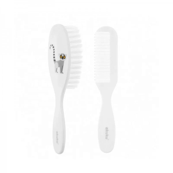Šis rinkinys leidžia daug lengviau tėveliams pasirūpinti kūdikio higiena, o kartu ir pati veikla yra maloni vaikui! Šepetys turi minkštus šerelius, pritaikytus gležnų kūdikio plaukų ir galvos odos priežiūrai. Nedirgina galvos odos, o patogi neslystanti rankena leidžia lengvai prižiūrėti net ir maudantis.