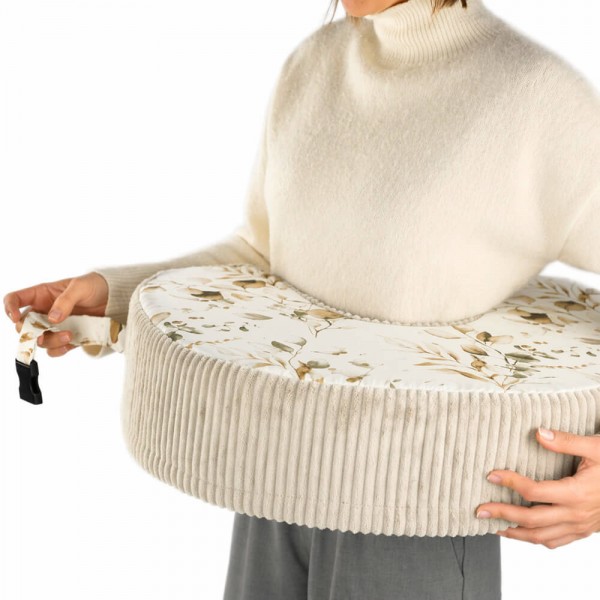 Poliuretano putų pagalvė maitinimui „Flumi Premium“ yra būtina kiekvienos mamos kraitelio dalis. Maža, ergonomiška ir neįtikėtinai patogi, ji sukurta siekiant užtikrinti maksimalų komfortą maitinant krūtimi ir ilsintis. Pupelės formos dizainas puikiai priglunda prie juosmens, tvirtai prilaiko kūdikį ir sumažina spaudimą mamos nugarai, kaklui ir pečiams. Pagalvė užpildyta lanksčiu T25 poliuretano putplasčiu, kuris atsparus deformacijai ir išlaiko savo formą net dažnai naudojant. Tai užtikrina jos stabilumą, neleidžia slysti ir suteikia idealią atramą kūdikiui. Užvalkalas pagamintas iš aukštos kokybės, kvėpuojančios OEKO-TEX sertifikuotos medvilnės ir minkšto korduro, užtikrinančio malonų kontaktą su oda ir apsaugančio nuo perkaitimo.