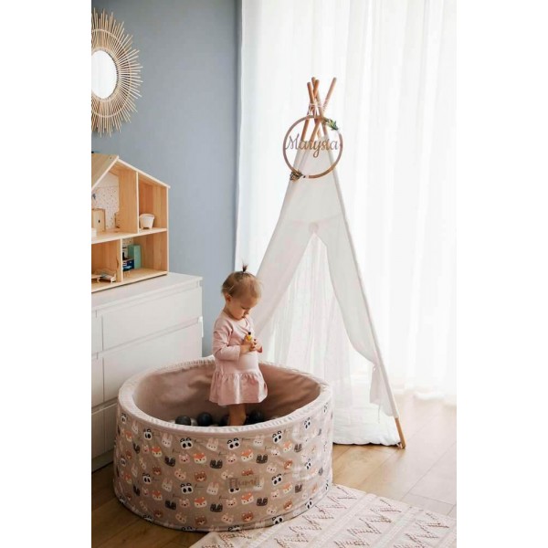 Personalizuotas kamuoliukų baseinas + 200 kamuoliukų. Jeigu pageidaujate, užsakymo komentare įvardinkite norimą kamuoliukų spalvų kombinaciją.
