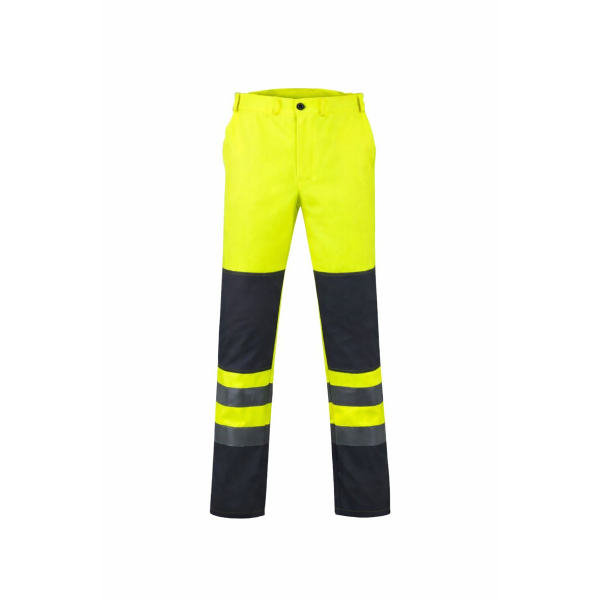 Gerai matomos kelnės turi laikiklius diržui, šonuose įsiūtos guminės juostelės, kelnės užsegamos metaline saga priekyje. Žemiau juosmens abiejose pusėse yra šoninės kišenės. Nugaros dalyje yra dvi viršutinės atviros kišenės ir ant dešinės kojos papildomai yra prisiūta siaura atvira kišenė (rašikliui, liniuotei ar kt.). Kelnių priekyje - plyšys, užsegamas užtrauktuku. Kelnių klešnių apačia užbaigta tiesi. Kojinių perimetre prisiūtos dvi 7 cm pločio šviesą atspindinčios juostelės. Juosta prisiūta dvigubu dygsniu. Drabužis išlaiko apsaugines savybes iki min. 50 skalbimo ciklų.