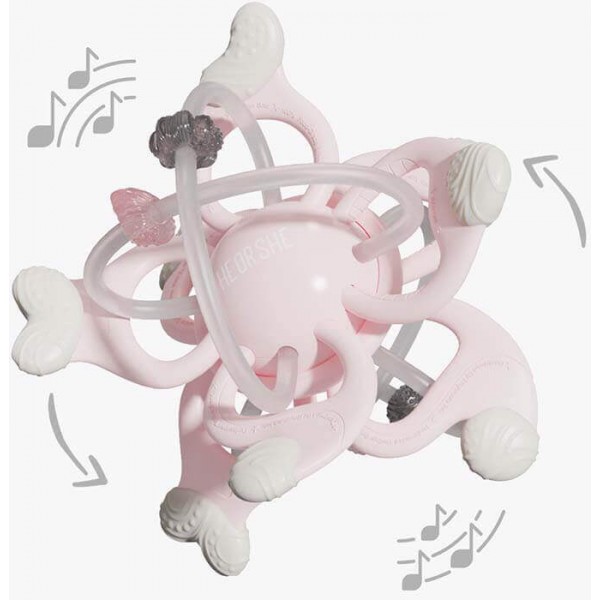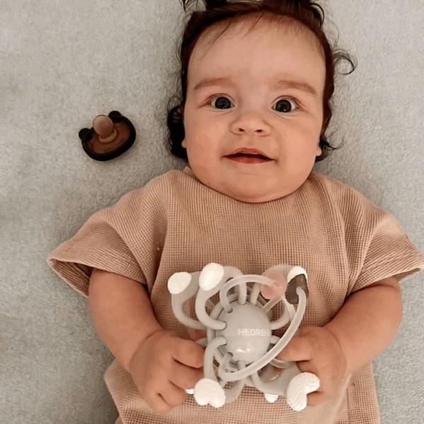 Heorshe kosminis kramtukas GALAXY – saugus ir žaismingas pagalbininkas mažyliui nuo 6 mėnesių, kai dygsta pirmieji dantukai. Pagamintas iš minkšto maistinio silikono, jis švelniai masažuoja dantenas ir padeda įveikti diskomfortą. Patogi forma lavina mažylio smulkiąją motoriką ir suėmimo įgūdžius.
