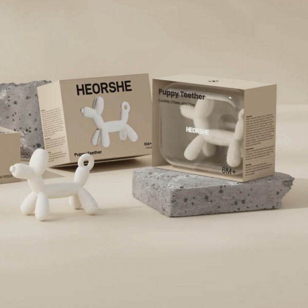 Heorshe silikoninis kramtukas PUPPY – draugiškas ir patikimas pagalbininkas dantukų dygimo metu nuo 6 mėnesių. Minkštas maistinis silikonas saugiai masažuoja dantenas, o šuniuko forma skatina mažylio smulkiosios motorikos ir pirštų įgūdžių ugdymą.