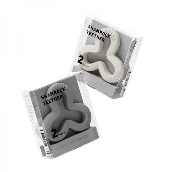 HEORSHE silikoniniai kramtukai SHAMROCK, 2 vnt., baltas/pilkas