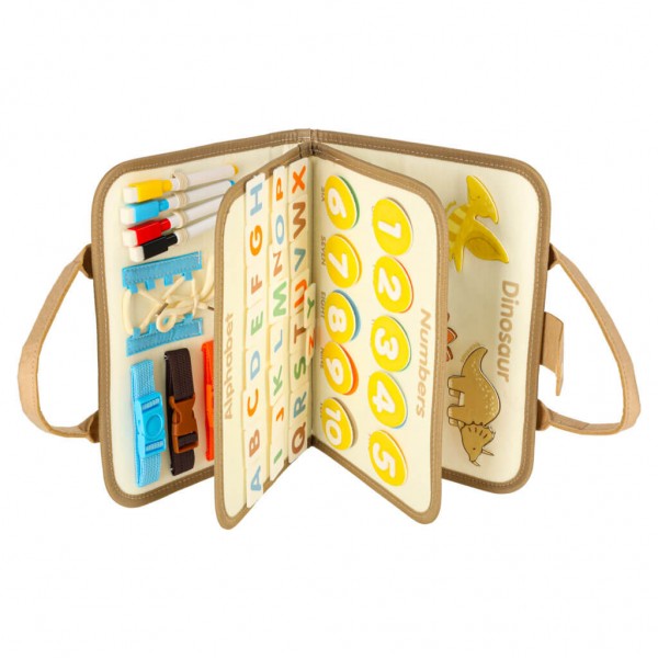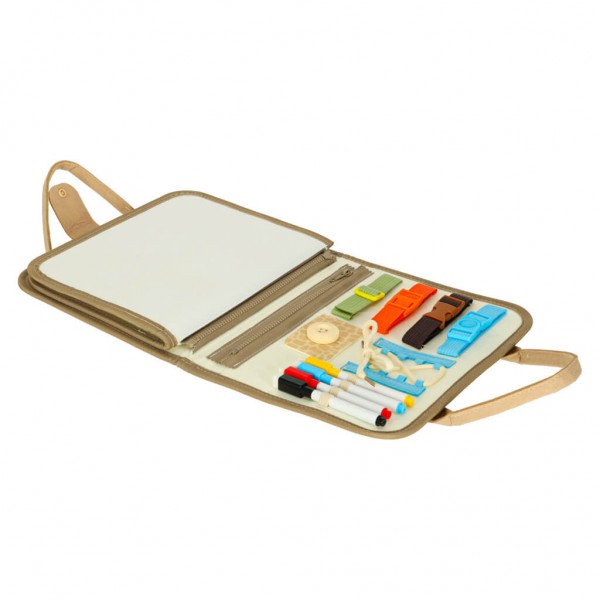 Pagal natūralų Montessori raidos metodą patogaus aplanko pavidalu sukurta manipuliacinė lenta yra puikus būdas jūsų vaikui mokytis. Spalvingos sagtys, sagos, lipdukai ir raišteliai skatina loginį mąstymą, lavina smulkiąją motoriką ir lavina rankų miklumą . Šis lavinamasis žaislas paverčia mokymąsi žaviu nuotykiu!