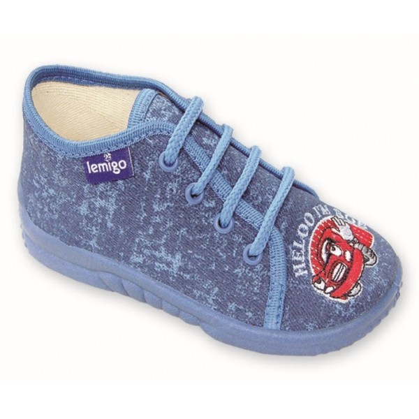 LEMIGO tekstilinė avalynė vaikams yra pagaminta iš 100 proc. medvilnės. Viduje yra natūralios odos vidpadis. Ši patogi avalynė leidžia kojų odai kvėpuoti, tinka dėvėti ne tik namuose, bet ir darželyje, kieme (sausu oru) ar kitoje aplinkoje. Lankstus padukas, pagamintas iš PVC leidžia vaikui jaustis patogiai, komfortabiliai ir neapsunkina vaikščiojimo.