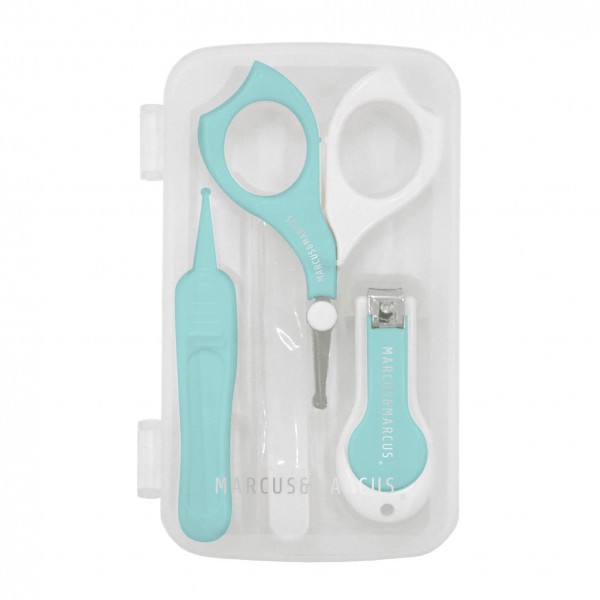 Saugokite savo mažylio nagus ir palaikykite puikią jų formą su Marcus & Marcus kūdikių nagų priežiūros rinkiniu, specialiai sukurtu mažiausioms rankytėms. Priežiūros rinkinį sudaro nagų žnyplės, žirklės, pincetas ir nagų dildė. Kūdikių nagų kirpimo žirklės turi ergonomišką rankeną ir išlenktus, persidengiančius ašmenis, todėl užtikrina tikslų kirpimą ir sumažina atsitiktinio įpjovimo riziką. Žirklės turi didelę rankeną, kad būtų patogu laikyti ir neslystų. Apvali galvutė leidžia kirpti švelniai ir tiksliai. Pincetas su minkštais galiukais turi neslystančią rankeną su patogiais iškilimais, todėl jį lengva laikyti ir valdyti. Švelni stiklinė nagų dildė yra idealaus dydžio mažiems rankų ir kojų pirštams. Ji užtikrina sklandų ir švelnų nagų dildymą, nesudraskydama nagų ir nepažeisdama odos aplink juos.