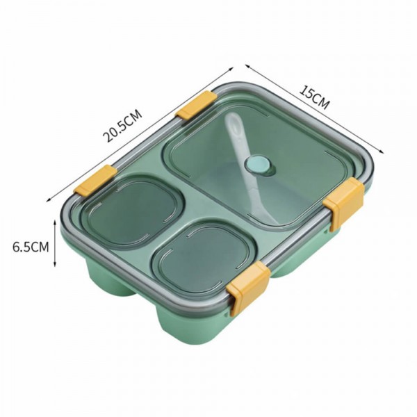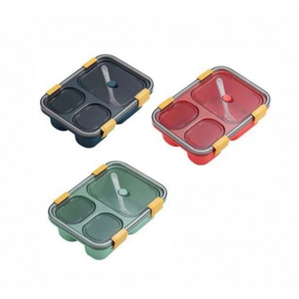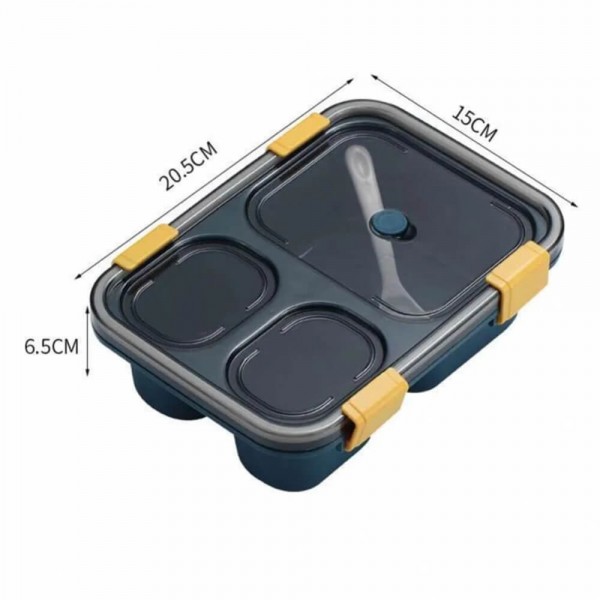Pietų dėžutė puikiai tinka pietums į darbą ir mokyklą. Maisto indas turi trys skyrelius, tvirtus spaustukus, neleidžiančius atsijungti elementams ir permatomą dangtelį.