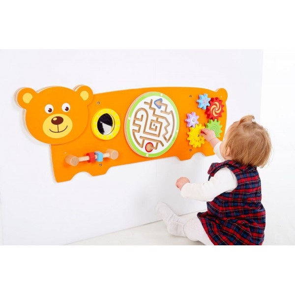 Vizualiai stulbinanti ant sienos kabinama lenta suteikia daugybę įdomių užsiėmimų vienam vaikui arba vaikų grupei, žaidžiančiai ir tyrinėjančiai kartu. Puikiai lavina rankų ir akių koordinaciją, pirštų valdymą ir smulkiąją motoriką. Taip pat teikia mažiems vaikams tinkamus problemų sprendimo iššūkius, įtraukiant į pokalbius apie tai, ką jie daro. Komplektuojama su tvirtinimo varžtais. Pagaminta iš MDF ir rekomenduojama naudoti tik patalpose.