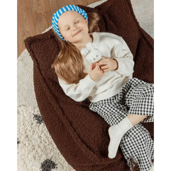 Visiems reikia ramios vietos atsipalaiduoti ir paskaityti mėgstamą knygą prie židinio, kol už lango krenta sniegas, o Wigiwama sėdmaišis yra idealus pasirinkimas! Patrauklus dizainas ir malonus liesti pliušinis meškiuko audinys kviečia pasinerti į sėdmaišį ir atsipalaiduoti. Pagamintas iš OEKO-TEX® sertifikuoto pliušinio meškiuko audinio, kuris dėl savo prabangios tekstūros suteikia nepamirštamus lytėjimo pojūčius mažajam savininkui. Produktą galima derinti su esamu kambario dekoru. Audinys prisideda prie aukštos ir veiksmingos gaminių saugos vaikams.